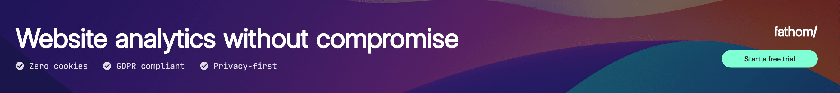 I personally hate those annoying cookie banners, Fathom Analytics is focused on GDPR compliance and data anonymity. This means there is no need a cookie banner for analytics if you use Fathom.